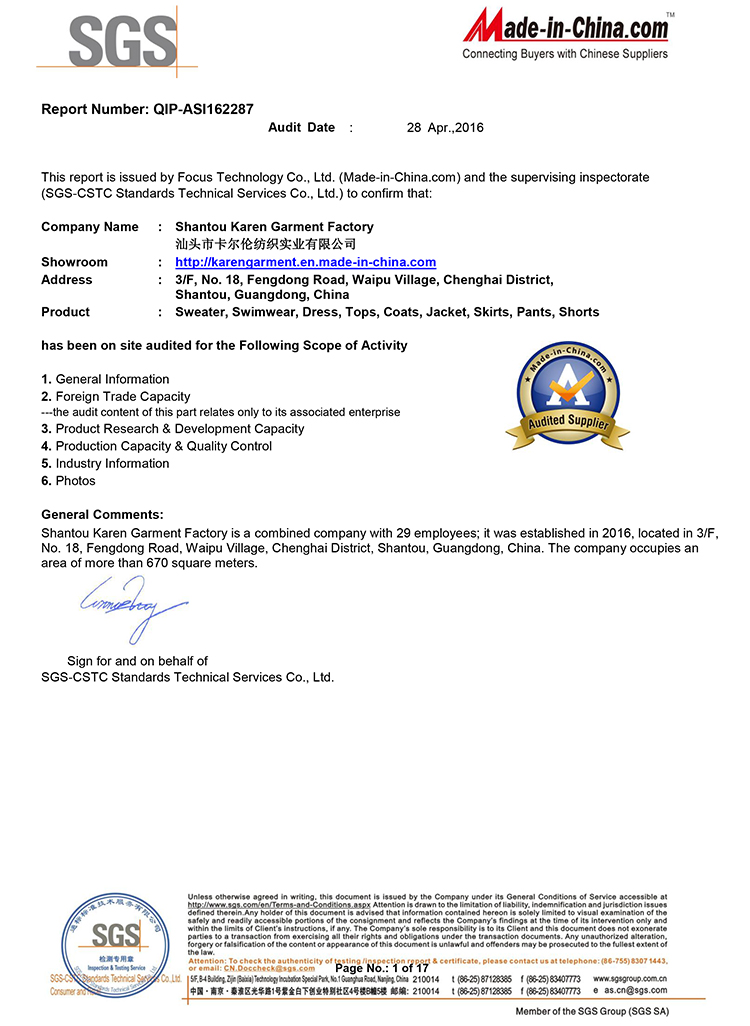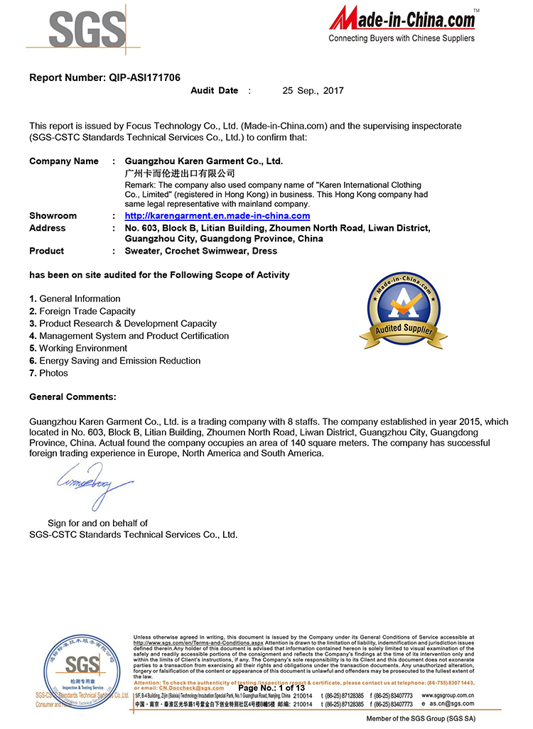 Karen International Clothing Co., Limited is a knitwear manufacturer based in Guangdong province, China.